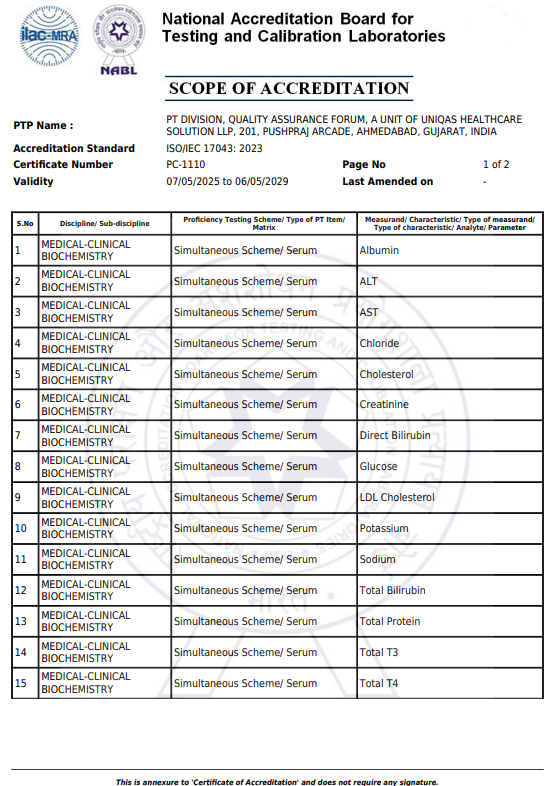 NABL Accredited Program as per ISO/IEC 17043:2023 standard organized by Quality Assurance Forum (QAF)