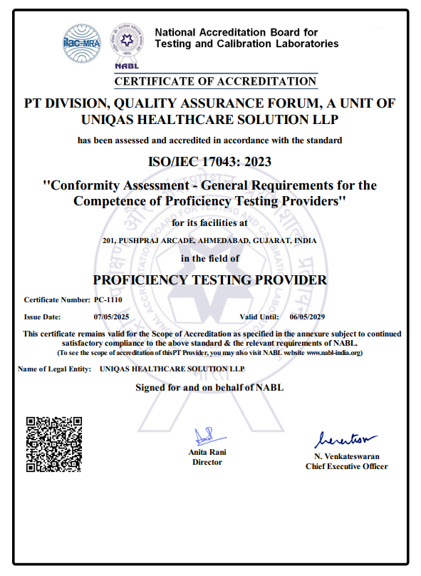 NABL Accredited Program as per ISO/IEC 17043:2023 standard organized by Quality Assurance Forum (QAF)